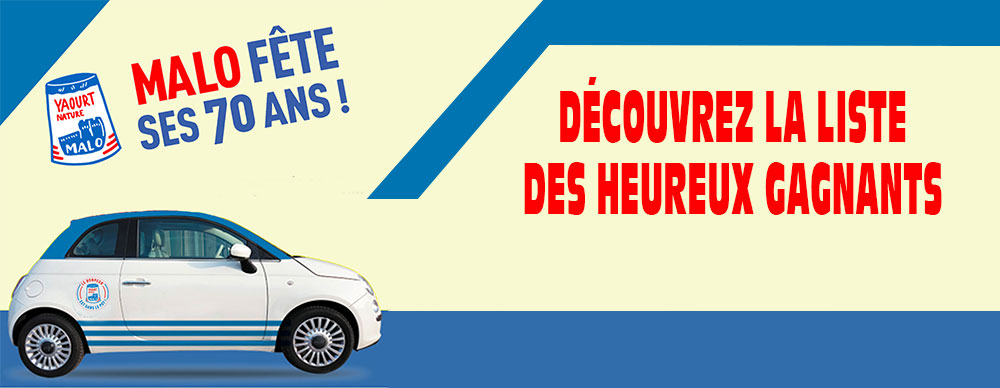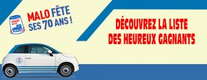 Vous avez été des milliers à participer au Grand Jeu Anniversaire de Malo, qui offrait la possibilité de gagner une FIAT 500 édition spéciale « MALO ».