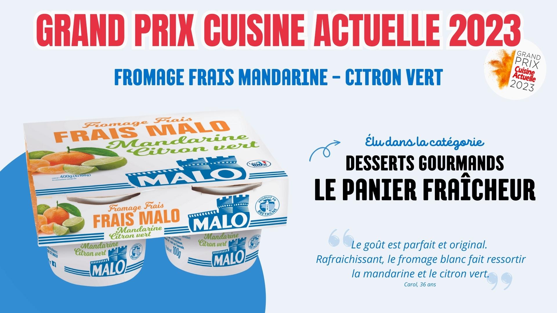 Le fromage frais Mandarine – Citron vert remporte le Grand Prix Cuisine Actuelle 2023 ! GRÂCE A SON ONCTUOSITÉ, SA FRAÎCHEUR ET SON ORIGINALITÉ,