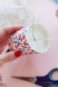 Etape 10: On plie et noue un pompon entre chaque pot de yaourt et le tour est joué ! Il ne vous reste plus qu’à allumer votre guirlande !
