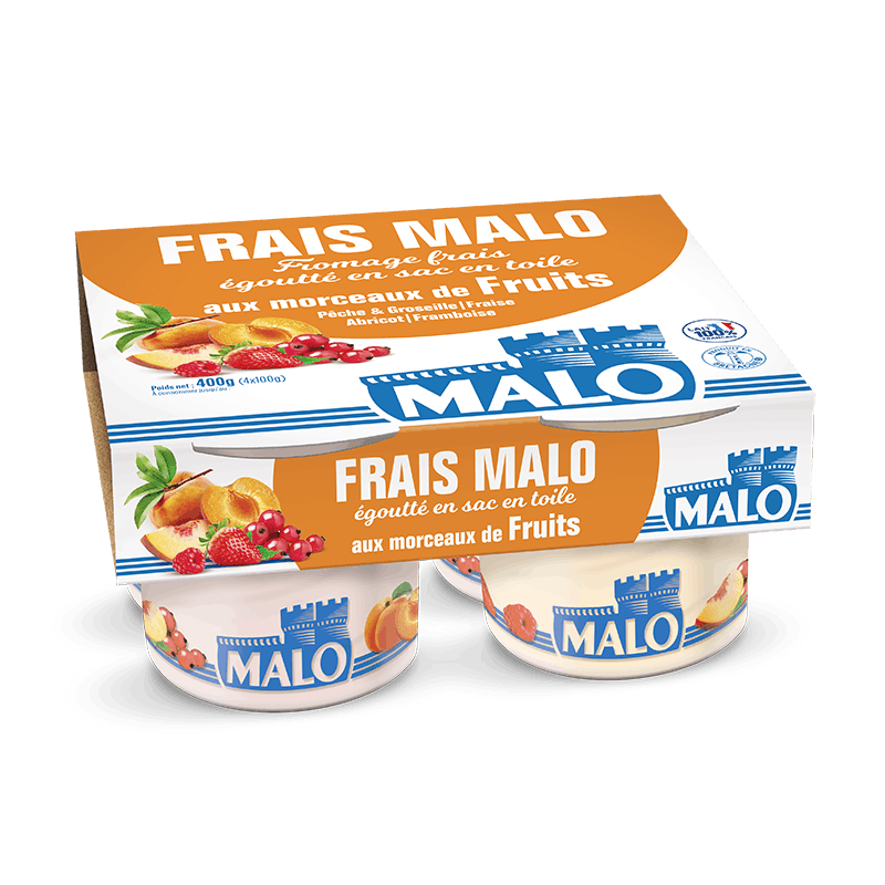 Une sélection des meilleures fraises, framboises, abricots, pêches et groseilles associés à la douceur lisse et crémeuse du fromage frais MALO.