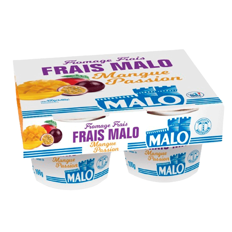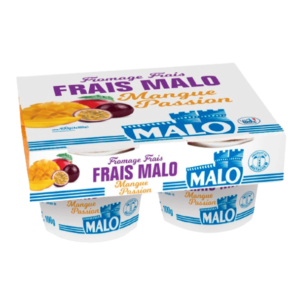 FROMAGE frais à 7% de matières grasses (79%), sucre (8%), eau, mangue (3,7%), fruits de la passion (1,3%), amidon natif, arômes naturels, jus concentré de citron, conservateur : sorbate de potassium.