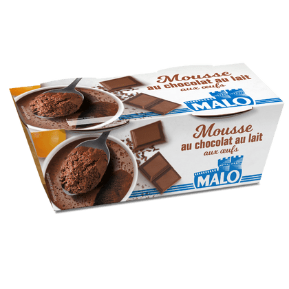 Mousse au Chocolat au lait MALO aux œufs : une texture légère et fondante qui révèle toute la douceur du chocolat au lait, réalisée avec une liste d’ingrédients courte, en pot carton 100% recyclable.