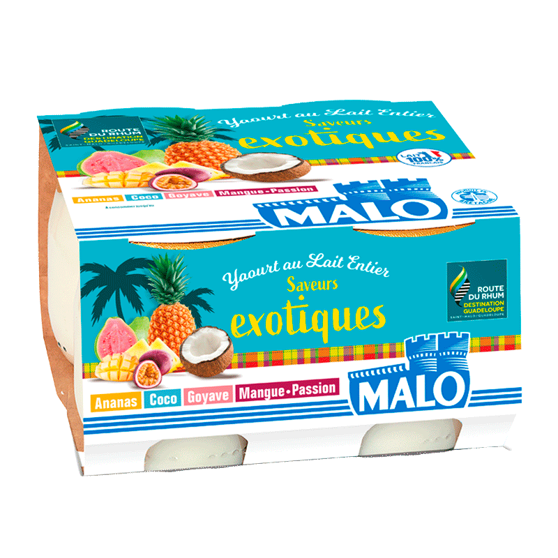 Un produit aux saveurs exotiques avec ses 4 recettes aux parfums originaux : Ananas, Coco, Mangue-Passion, Goyave.