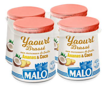 Le goût et la texture uniques d’un yaourt brassé avec une recette aux morceaux d’ananas et de coco.