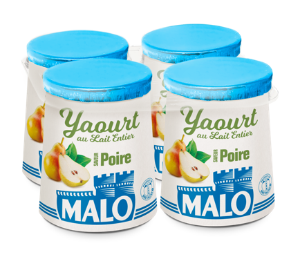 Découvrez le goût et la texture uniques de notre yaourt au lait entier de notre collecte MALO au bon goût intense de Poire.